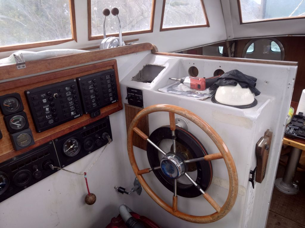 Det blir naturligtvis mer jobb än jag trodde. Men, så är det ju alltid med båtar. Det har visat sig att styrningen måste bytas ut och hon måste saneras ini. Den nya komposttoan är på plats och motorerna är monterade. Sakta går det framåt. Men hon kommer inte i sjön iår tyvärr. Däremot hoppas jag att jag kan segla henne nästa år.