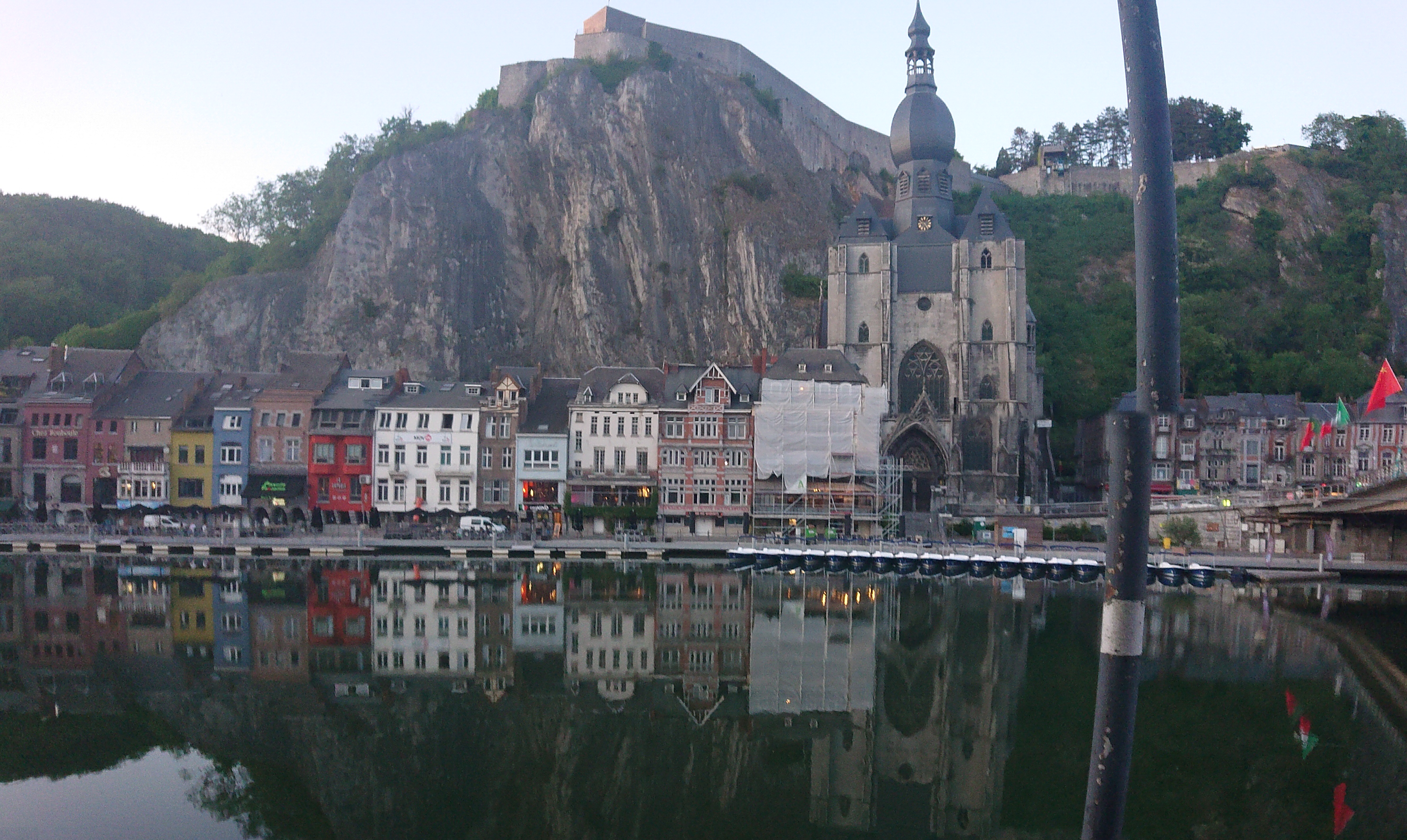 När vi lämnade Maastricht slussade vi strax efter staden in till Belgien. Resan genom Belgien var fram till Namur ganska trist. Bara stora industrier. Efter Namur blev landskapet mycket vackert. Vi upptäckte att allt sedan vi lämnade Maastricht har slussningen gått uppåt. Från början stora slussar och nu bara små slussar som slussar några meter. Men hela tiden uppåt Efter tre dagar har vi nu kommit till Frankrike. Här köpte jag en vinjett och fick en fjärrkontroll för att kunna sköta slussarna själva. Direkt efter staden Givet åkte vi genom en liten sluss och sedan genom en några hundra meter lång tunnel. Det var en spännande upplevelse. Nu ligger vi i en liten stad, där jag fick den största kebaben i pitabröd som jag har sett. Imorgon förutsätter resan genom Frankrike.