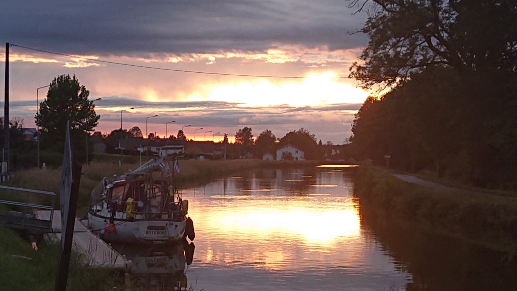 Igår kom jag fram till Port St Louis vid Medelhavet. Jag har åkt ca 3600 km tvärs genom Europa. Det har varit jobbiga passager och det har varit spännande passager. Jag har träffat många fina människor från olika länder. På den sista biten har jag pga av den extrema värmen som råder här just nu sett många skogsbränder. På en sträcka gick två släckflygplan ner ca 100 meter bredvid mig och tankade vatten för att släcka bränderna. Det sista 200 kilometer var dock rätt tråkiga. En enorm flod och inga möjligheter att stanna i städer som Avignon eller Arles. De har helt enkelt inga liggplatser. Men, att komma till Port St Louis var underbart. Nu måste det bara mastas på och sedan kan jag segla igen. Det var hela berättelsen om kanaler i Europa. Nu kommer resan på Medelhavet ner mot Spanien so småningom. Först är det nu vila och njuta av tillvaron.