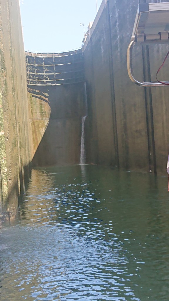 Det började med höga slussar Ca 14 meter upp Och en tillI väntan på slussningen