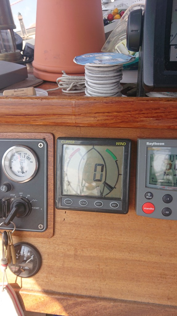 Efter fyra veckor i Port St Louis bar det av till Saintes Maries de la mer en sträcka på ca 30 nm. Det var det första möjliga stoppet efter Port St Louis. Där stannade vi en natt. Det var mycket trevligt men ett riktigt turisten ställe. Nästa dag gick resan vidare till port carmarque. Där stannade vi två nätter pga åskoväder. Och det var ett riktigt åskväder. Det blixtrade och dundrade i mer än två timmar. Till det kom mycket stark regn och hagel. Och en halv storm. Efter två timmar var allting över himmelen var åter blå och temperaturen vid 38 grader igen Vägen från port Camargue till Sete var lite av en transportsträcka. Hela vägen sedan Port St Louis vid Medelhavet lös vinden med din frånvaro. Jag hade Genuan uppe för att stabilisera eftersom det var mycket vågor på alla de tre sista etapperna