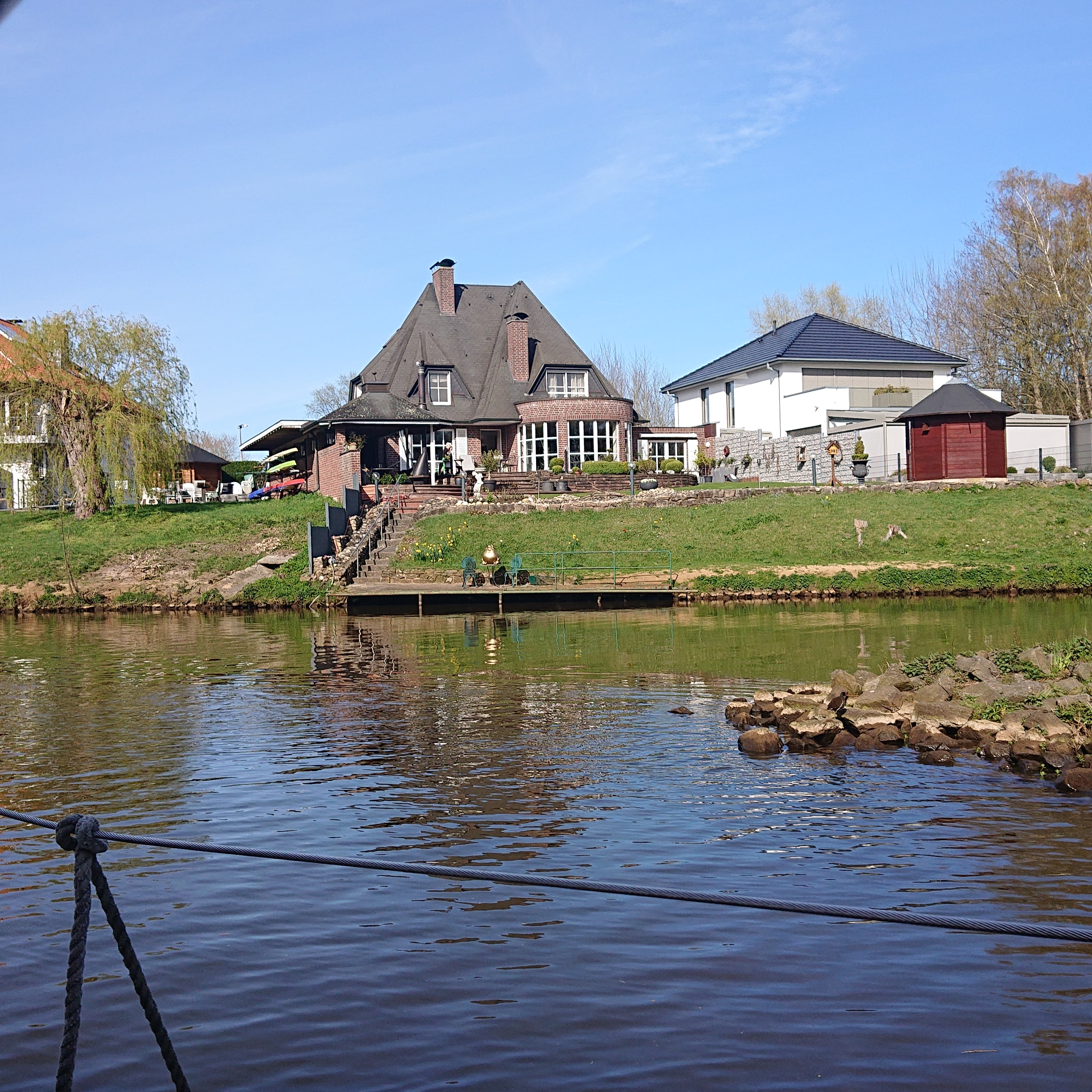 Efter att vi passerad Hannover och tagit paus i Minden fortsatte resan mot Dortmund Ems kanal. Det blev några mellanstop innan vi nådde Dortmund Ems kanal. Från Minden blev kanalen rätt fin men en massa pråm trafik. När vi svängde in i Dortmund Ems kanal blev det nästan lite som Göta kanal men större. En och annan pråm mötte vi. Men, det blev mycket natur och vi åkte genom små städer och byar. Skillnaden mellan Mittellandkanal och Dortmund Ems kanal är även att DEK har många fler slussar. Kanalen är även längre än jag trodde.